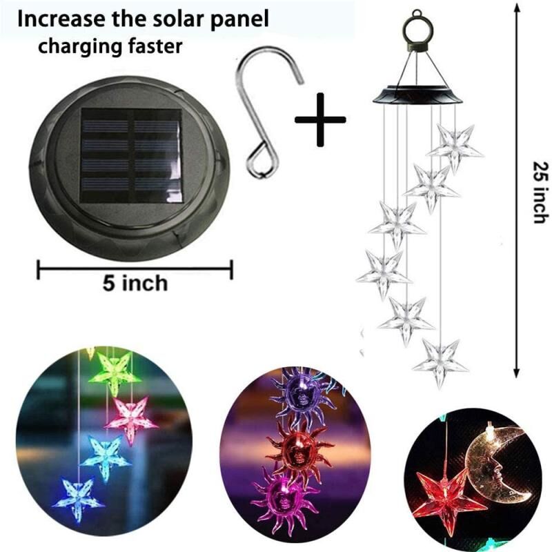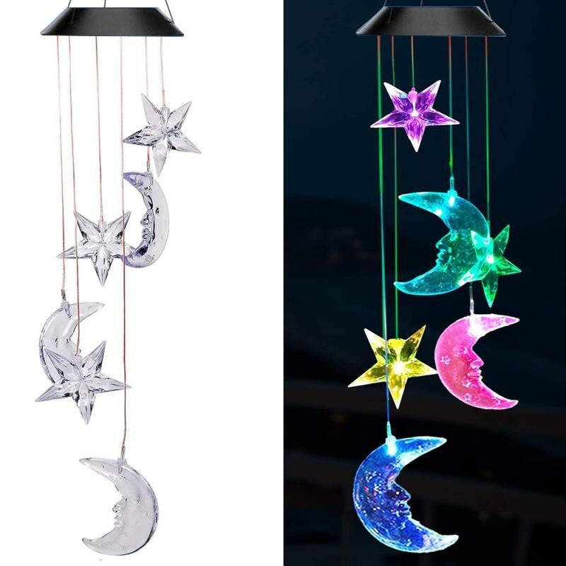 Υπαίθρια πολύχρωμα LED ηλιακή Wind Chime φως κήπο πάρκο διακοσμητικά αδιάβροχο φως (μαύρο κέλυφος αστέρι φεγγάρι)