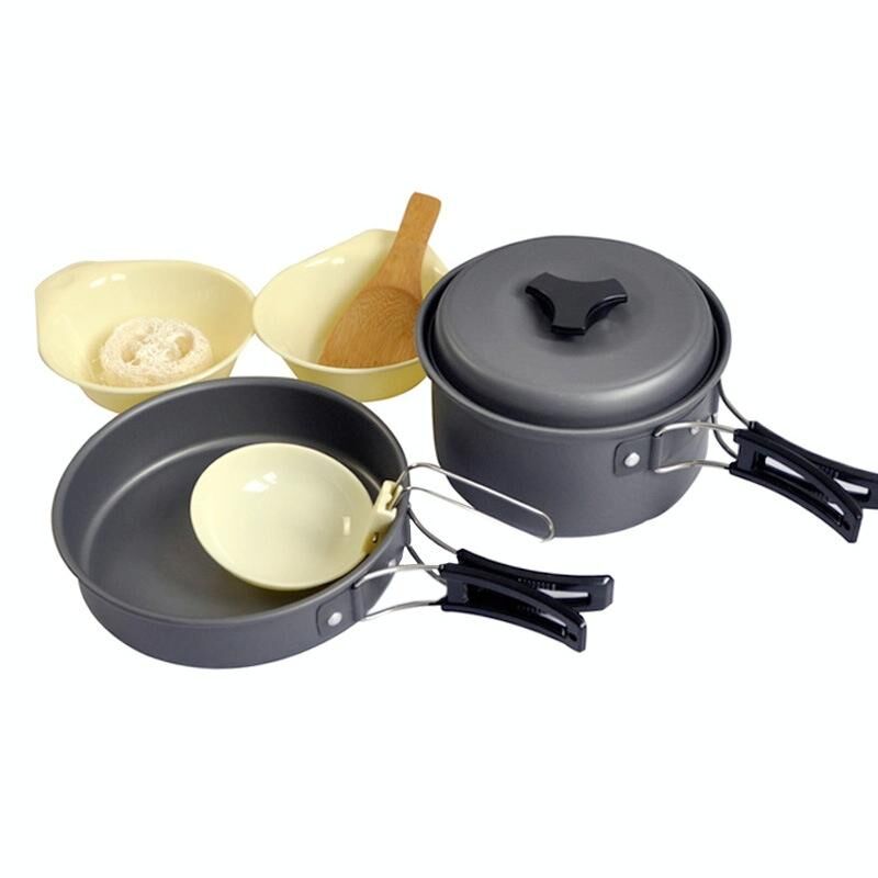 6. Κατάλληλο για 1-2 άτομα, συμπεριλαμβανομένου ενός μικρού σκεύους και τηγανιού, μιας κουταλιάς της σούπας, ενός κουταλιού ρυζιού, δύο μπολ. Εισαγόμενο αλουμίνιο, σκληρή οξείδωση αλουμινίου, αντοχή σε υψηλή θερμοκρασία, τριβή. Κουτάλια- κουτάλια ρυζιού και μπολ είναι κατασκευασμένα από υλικά υψηλής σκληρότητας και ανθεκτικά σε υψηλές θερμοκρασίες. Μαύρη σακούλα πλέγματος και συσκευασία σε χαρτοκιβώτιο.