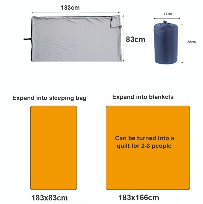 1. Μέγεθος: ξεδιπλώνεται σε υπνόσακο μεγέθους 183cm (μήκος) X83cm (πλάτος), ξεδιπλώνεται σε κουβέρτα μεγέθους 183cm (μήκος) X166cm (πλάτος)