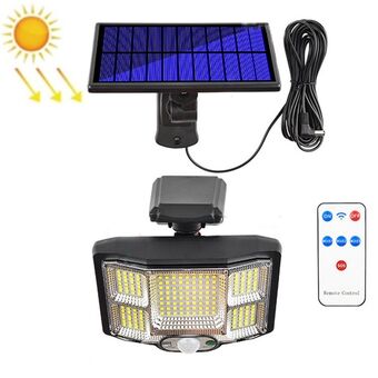 Φωτιστικό τοίχου εξωτερικού χώρου με ηλιακή ενέργεια και αισθητήρα κίνησης, αδιάβροχο για οικιακή χρήση, κήπο και δρόμο, με τηλεχειριστήριο. Προδιαγραφές: 168 ενσωματωμένα LED.