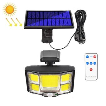 Φωτιστικό τοίχου εξωτερικού χώρου με ηλιακή ενέργεια και αισθητήρα κίνησης, αδιάβροχο για οικιακή χρήση, κήπο και δρόμο, με τηλεχειριστήριο. Προδιαγραφές: 96 COB διαχωριστά.