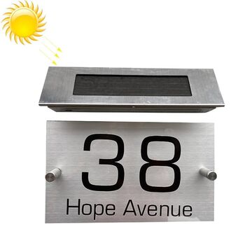 Μικρό Φωτιστικό Αριθμού Σπιτιού Ηλιακής Ενέργειας από Ανοξείδωτο Ατσάλι με 4 Λευκά LED (67x30) - Πλάκα Ένδειξης Διεύθυνσης με Αριθμούς LED