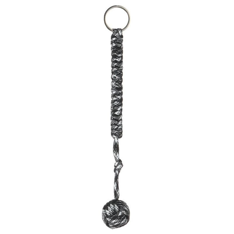 Υπαίθρια προστασία ασφαλείας Μαύρη μαϊμού γροθιά χάλυβα μπάλα που φέρει αυτοάμυνα Lanyard επιβίωσης αλυσίδα κλειδιών (μαύρο και άσπρο)