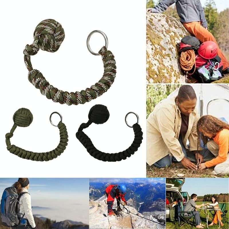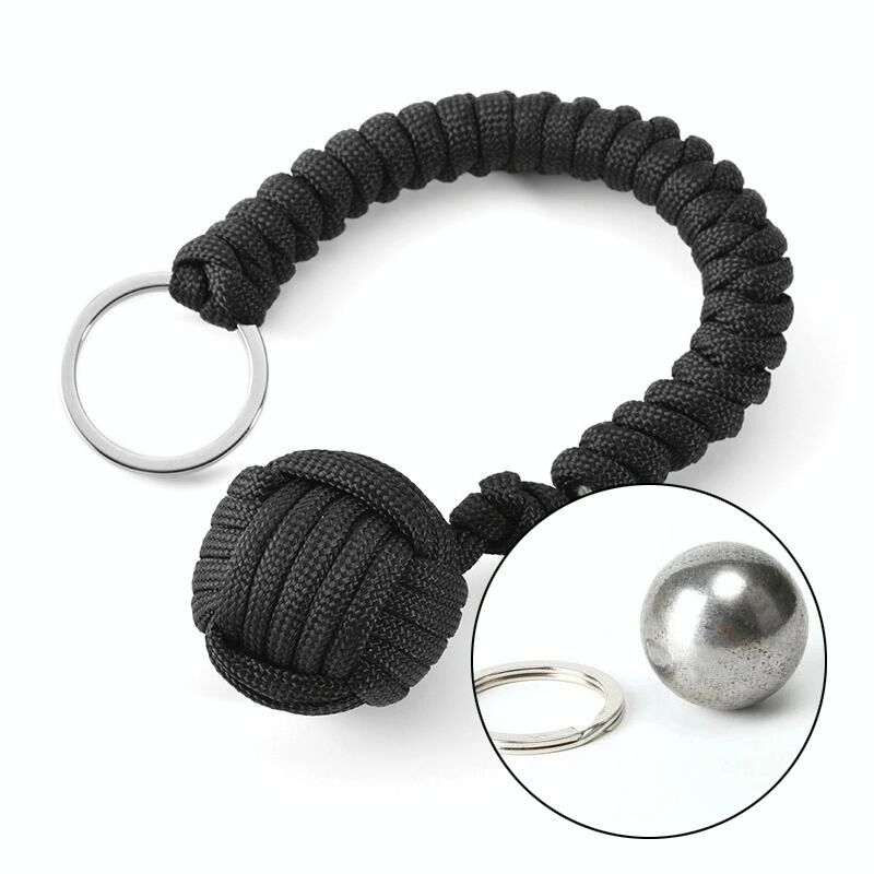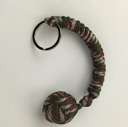 Υπαίθρια προστασία ασφαλείας Μαύρη μαϊμού γροθιά χάλυβα μπάλα που φέρει αυτοάμυνα Lanyard επιβίωσης αλυσίδα κλειδιών (Camouflage Green1)