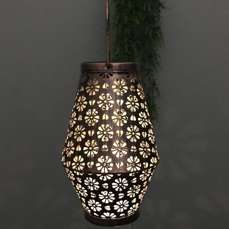 Outdoor Solar Wrought Iron Lantern Garden Decoration Light LED Pendant Lamp