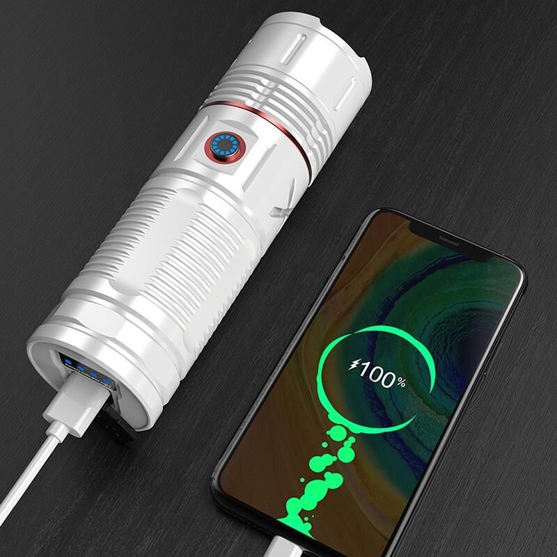 Φακός Εξωτερικού Χώρου, Λευκός, Laser, Φόρτιση Type-C, Τηλεσκοπικό Zoom με Λειτουργία Power Bank (Μαύρο)