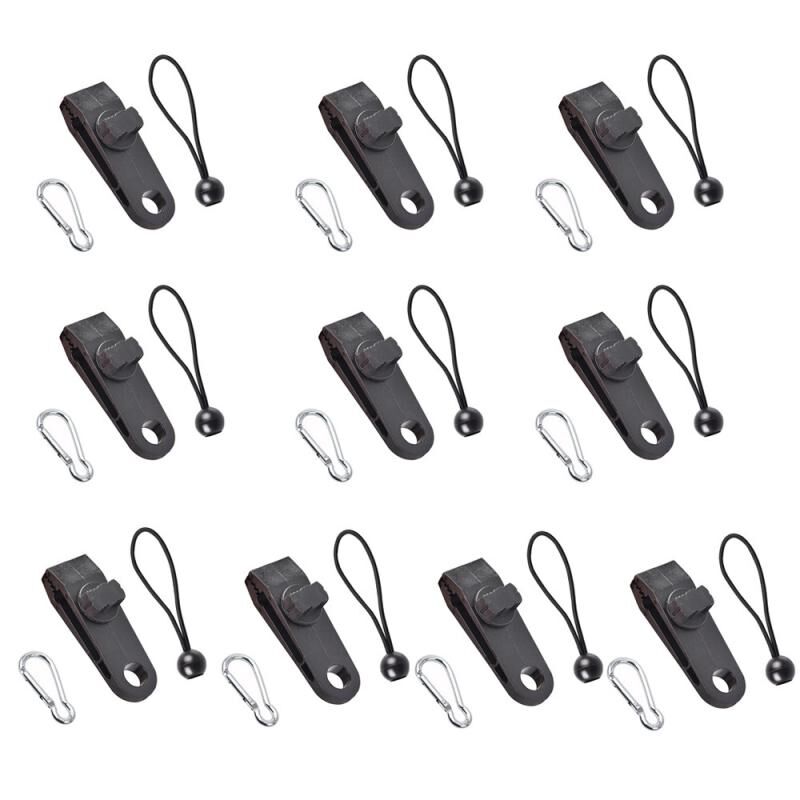 Υπαίθρια αντιανεμικό στέγαστρο Σταθερό σκηνικό κλιπ σχοινί πόρπη σετ 10 κλιπ + 10 μαύρα σχοινιά + 10 ασημένιες πόρπες