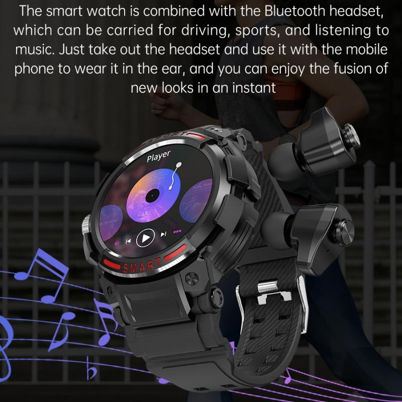 OVISEN GT100 1.39 inch TFT Screen 2 in 1 Bluetooth Headset Smart Watch, Support Blood Oxygen Monitoring/Bluetooth Music(Grey)