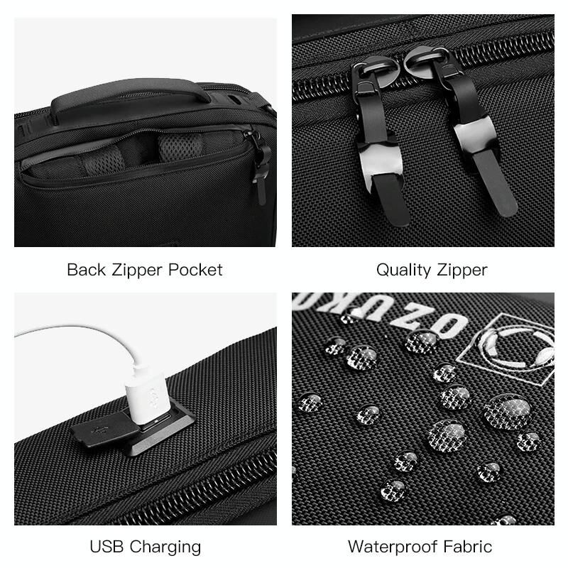 13. Θήκη φερμουάρ στην πλάτη, μπορεί να κρύψει τους διπλούς ιμάντες ώμου για να μετατραπεί σε τσάντα ώμου