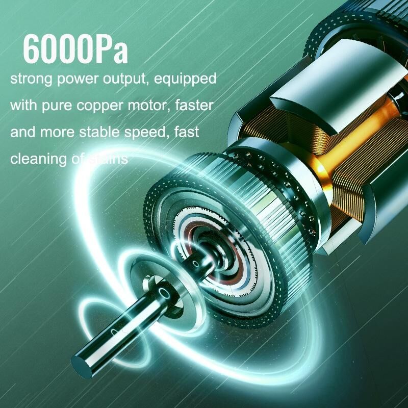 4. 6000Pa strong power output, equipped with pure copper motor, faster and more stable speed, fast cleaning of stains