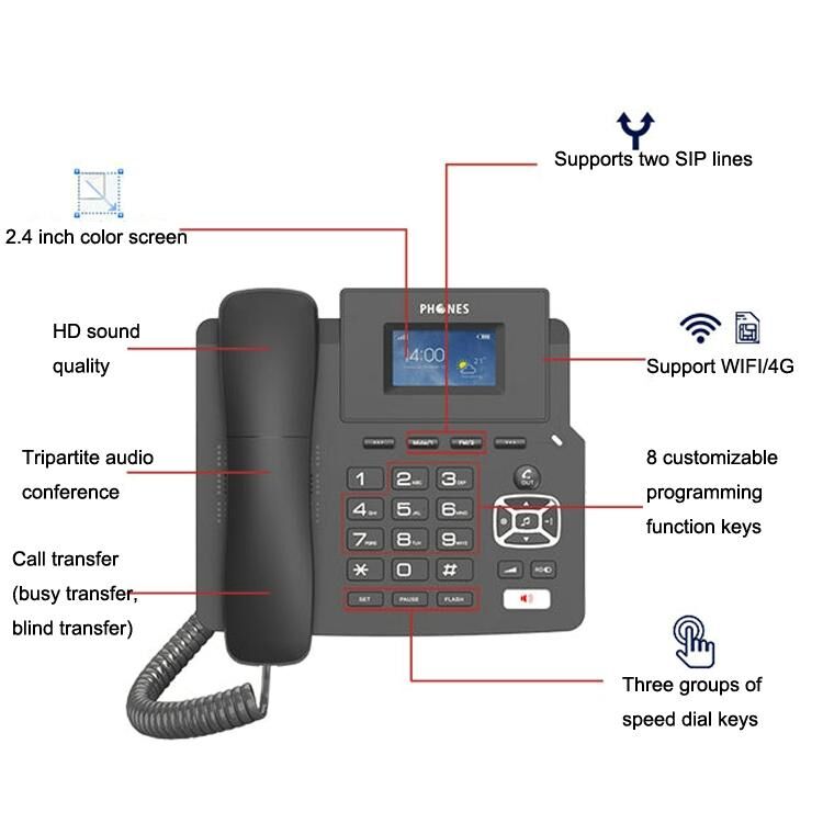 P03 4G+VOIP Dual Mode Wireless Fixed Line SIP Network Phone IP Enterprise Office Phone Wireless Landline