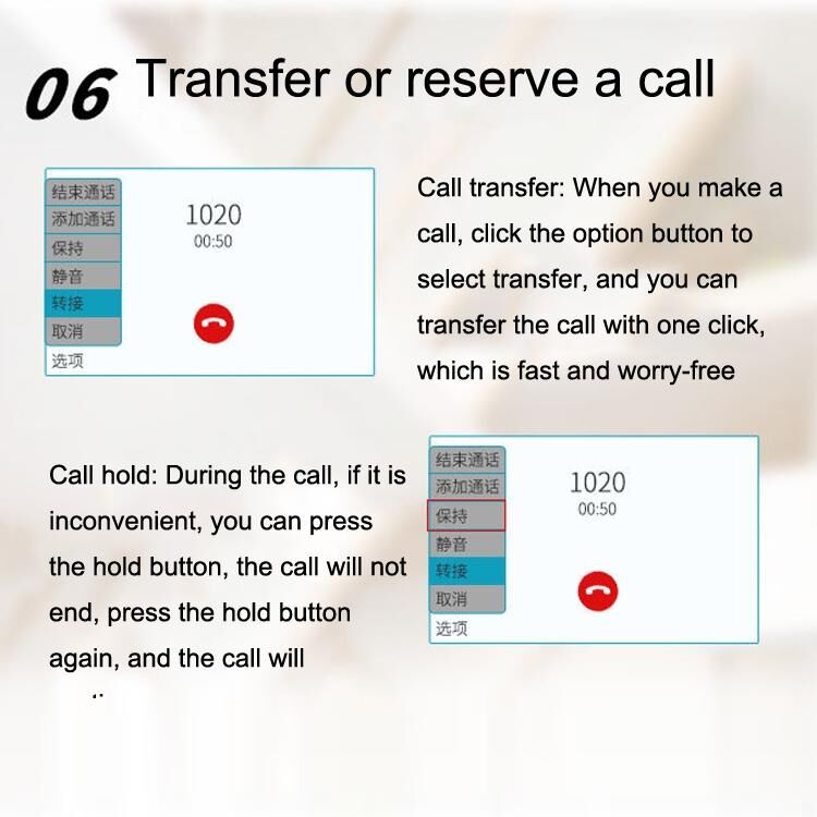 8. Call transfer: When you make a call, click the option button to select transfer, and you can transfer the call with one click, which is fast and worry-free