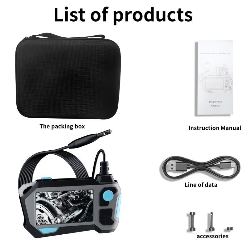 Ενδοσκόπιο βιομηχανικό περιστρεφόμενο P120 με διπλούς φακούς 8mm και οθόνη, διάμετρος ουράς σωλήνα 16mm, Προδιαγραφή: Σωλήνας 5m.