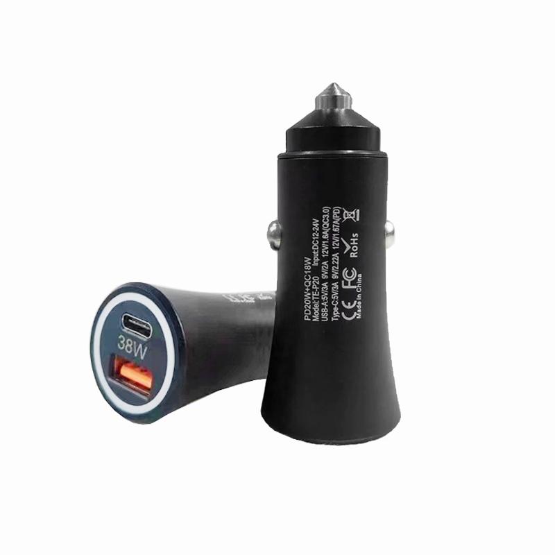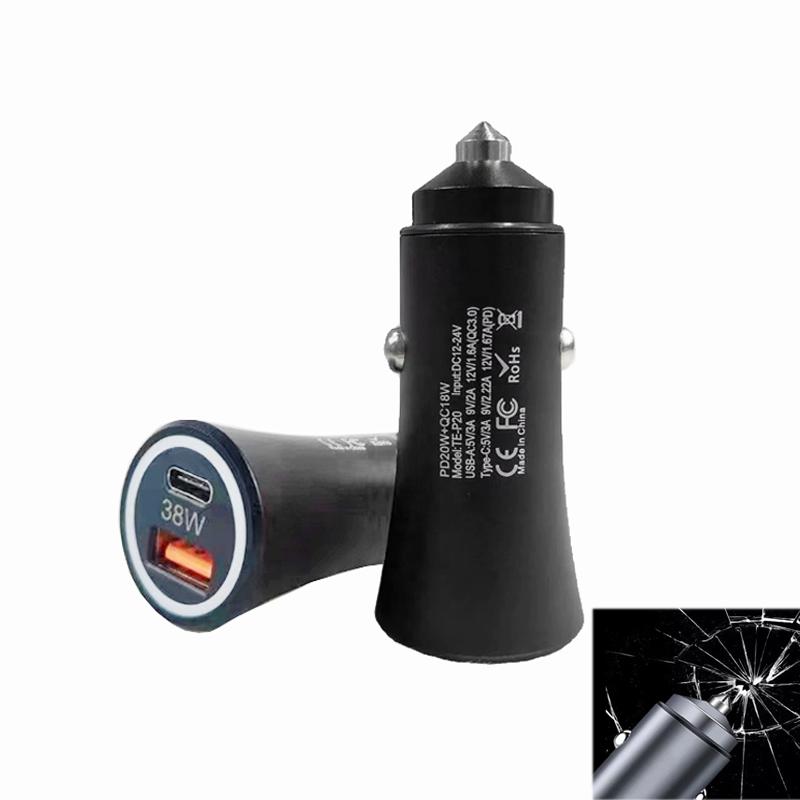 P20 38W PD3.0 20W + QC3.0 USB Φορτιστής Αυτοκινήτου με Σφυρί Ασφαλείας (Μαύρο)