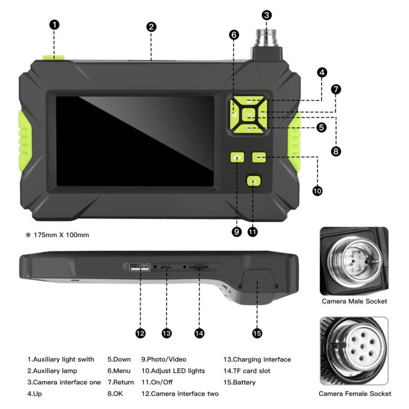 P30 8mm IP67 Waterproof 4.3 inch HD Portable Endoscope Hard Cable Industrial Endoscope, Cable Length: 5m(Green)