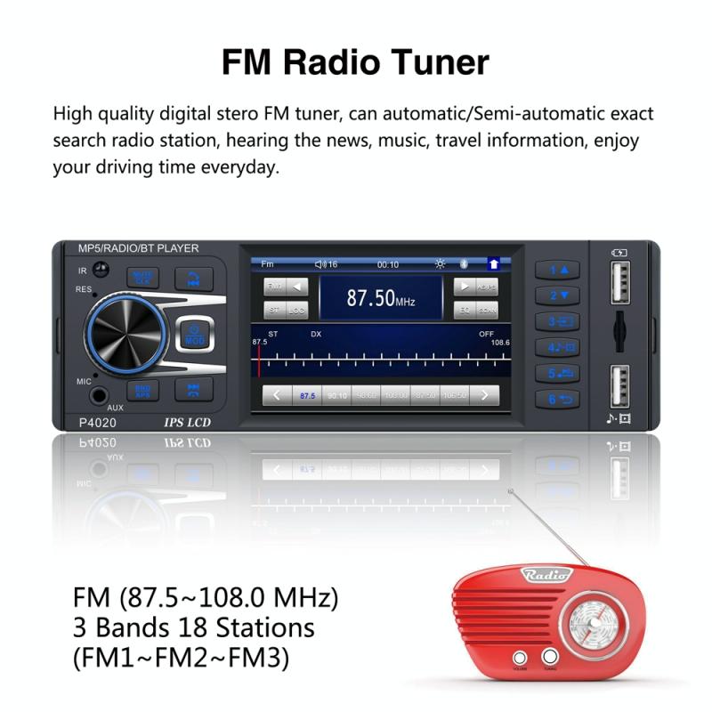P4020 3.8 inch Universal Car Radio Receiver MP5 Player, Support FM & Bluetooth & TF Card with Remote Control