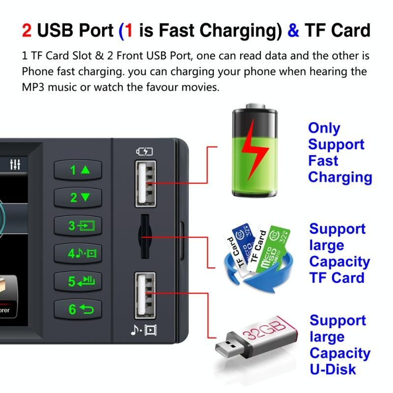 10. Power-off with auto-memory store function under radio or TF/USB mode
