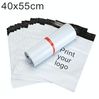 100 τεμάχια / πακέτο 40x55cm προσαρμοσμένες τυπωμένες παχιές πλαστικές τσάντες ταχυμεταφορών με το λογότυπό σας για προϊόντα συσκευασίας & αποστολής (λευκό)