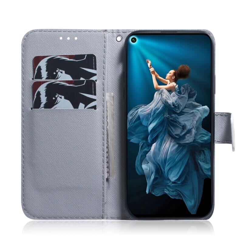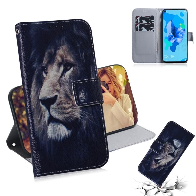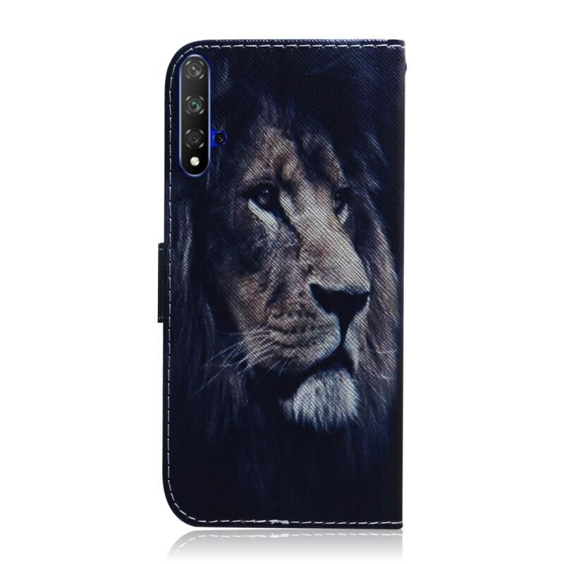 Θήκη Δερμάτινη με σχέδιο ζωγραφικής, πολύχρωμη, με οριζόντια αναδίπλωση, βάση στήριξης & θήκες για κάρτες & πορτοφόλι για Huawei Honor 20 (Lion). (Κόκκινο)