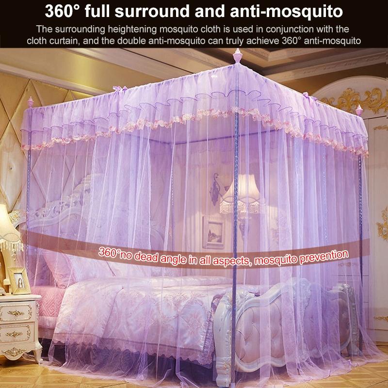 Palace Style Encryption Floor-standing Stainless Steel Three-door Mosquito Net, Specification:25 mm Bracket, Size:120x200 cm(Purple)