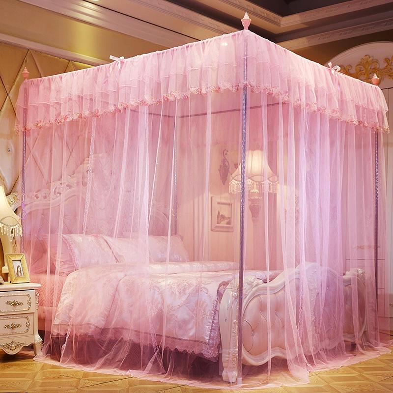 Palace Style Encryption Floor-standing Stainless Steel Three-door Mosquito Net, Specification:25 mm Bracket, Size:180x200 cm(Pink)