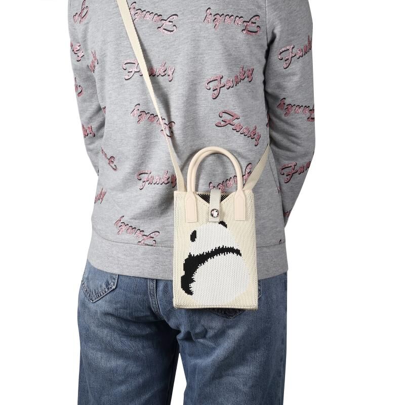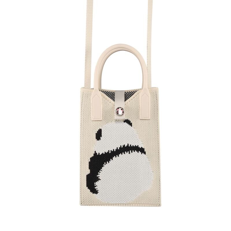 Τσάντα κινητού τηλεφώνου τύπου crossbody, πλεκτή, με σχέδιο panda, για τηλέφωνα έως 6,9 ίντσες (Λευκό)