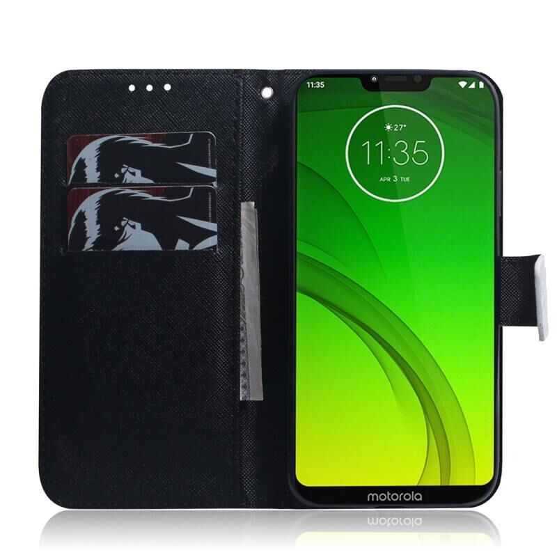 Θήκη δέρματος με σχέδιο panda, πολύχρωμη, οριζόντια αναδίπλωση για Motorola Moto G7 Power, με βάση & θήκες καρτών & πορτοφόλι.