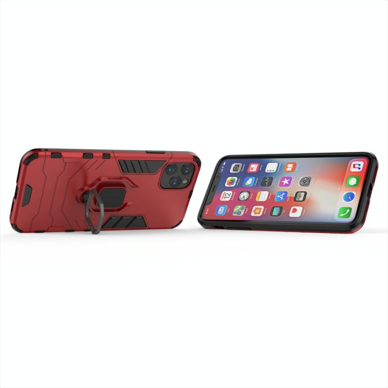 Panther PC + TPU Shockproof Protective Case with Magnetic Ring Holder for iPhone 11 Pro Max(Red)