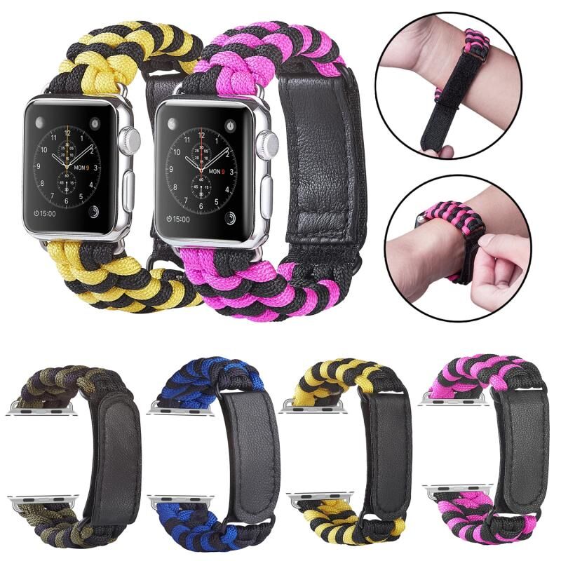 Λουρί ρολογιού Apple Watch από νάιλον με πλέξη παρακορδίου, με κούμπωμα Velcro, για Apple Watch Series 9&8&7 41mm / SE 3&SE 2&6&SE&5&4 40mm / 3&2&1 38mm (Ροζ)