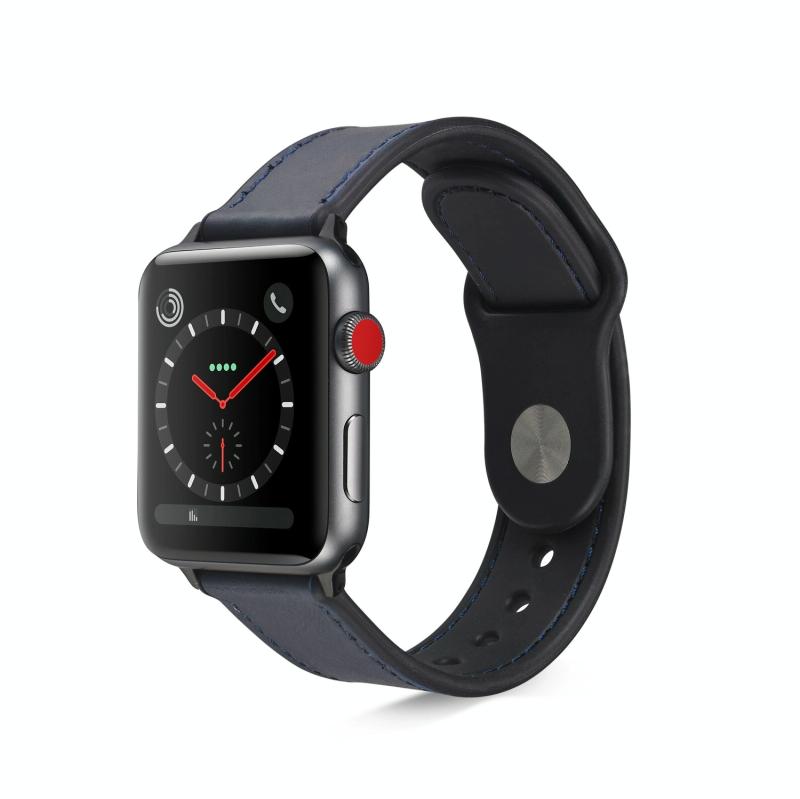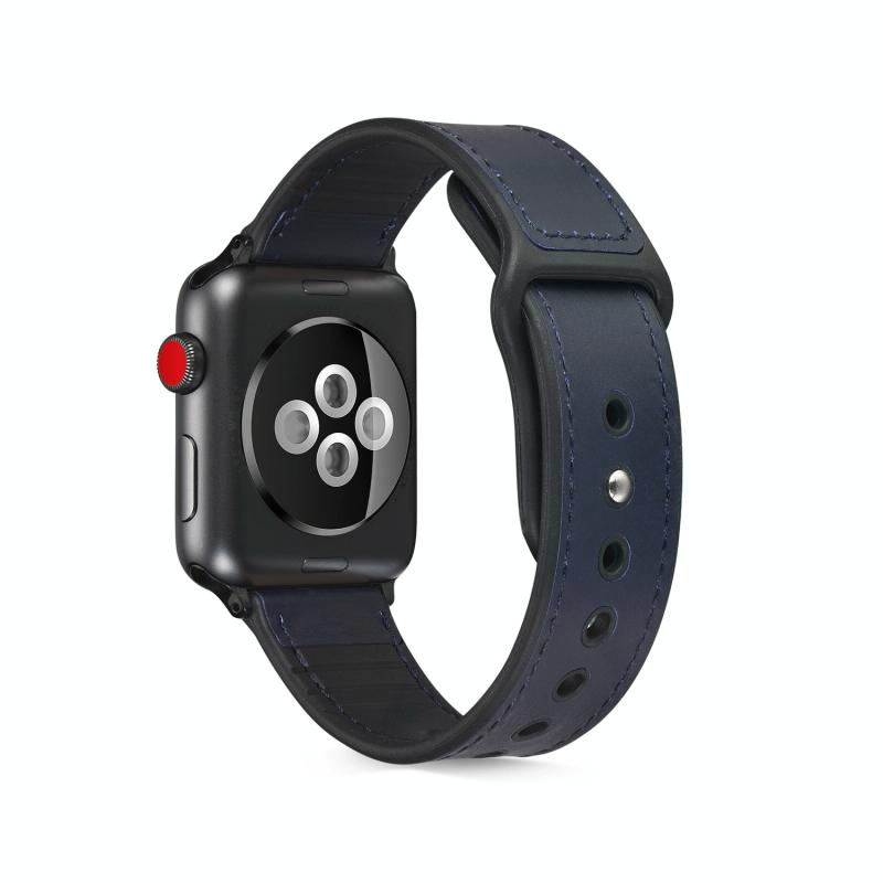Λουρί ρολογιού από δέρμα-πάστα και TPU για Apple Watch Series 9&8&7 41mm / SE 3&SE 2&6&SE&5&4 40mm / 3&2&1 38mm (Σκούρο Μπλε)