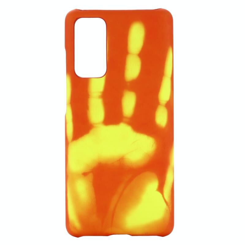 Επικόλληση δέρματος + Θερμικός αισθητήρας PC Αποχρωματισμός θήκη για Samsung Galaxy A32 5G (κόκκινο κίτρινο)