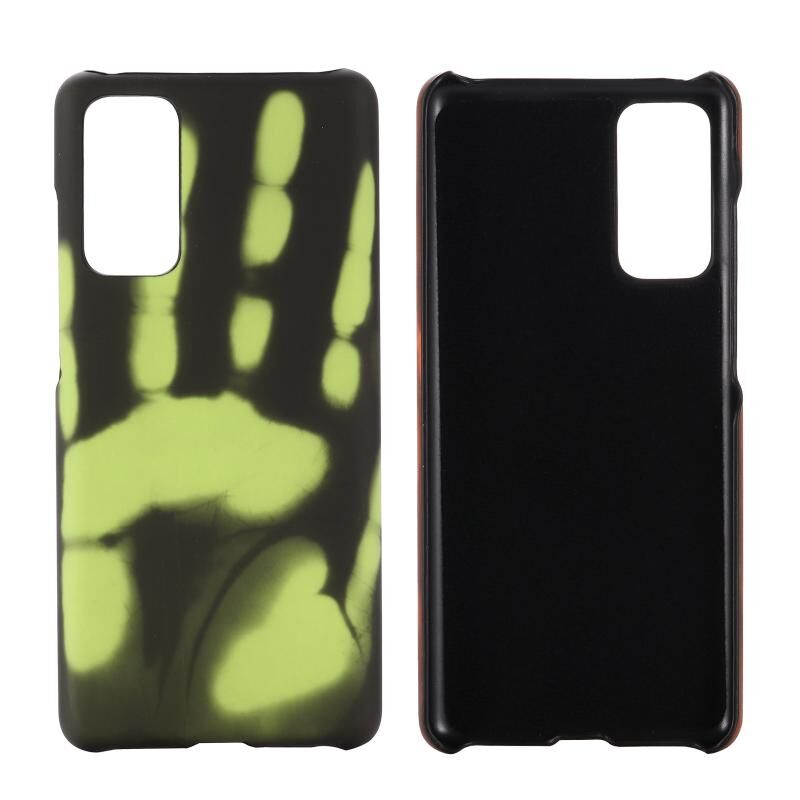 Επικόλληση δέρματος + Θερμικός αισθητήρας PC Αποχρωματισμός θήκη για Samsung Galaxy A52 4G/5G (μαύρο πράσινο)