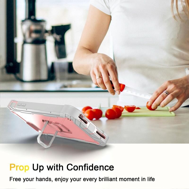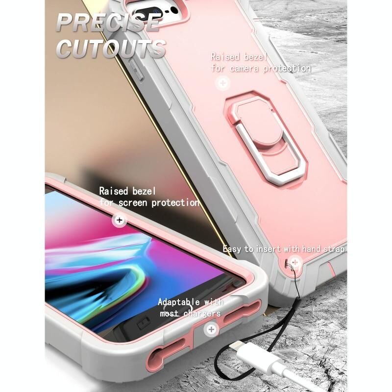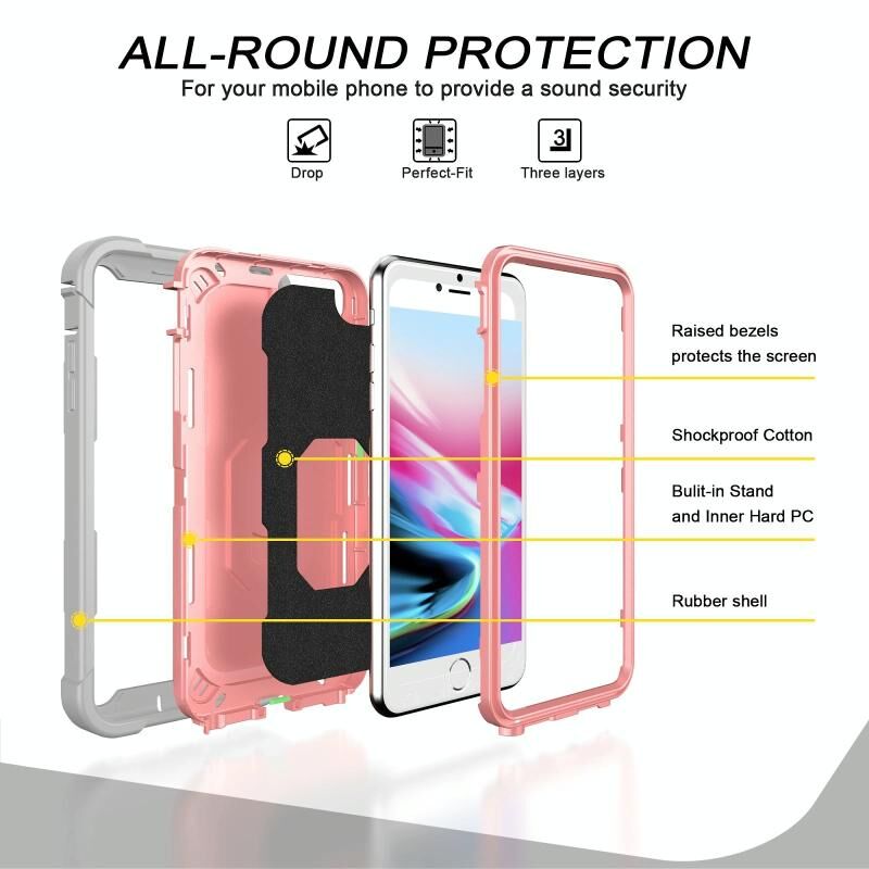 PC + Rubber 3-layers Shockproof Protective Case with Rotating Holder For iPhone 8 Plus / 7 Plus(Grey White + Rose Gold)