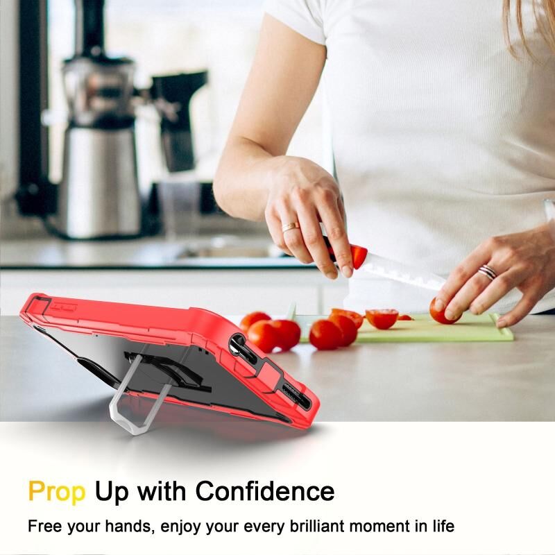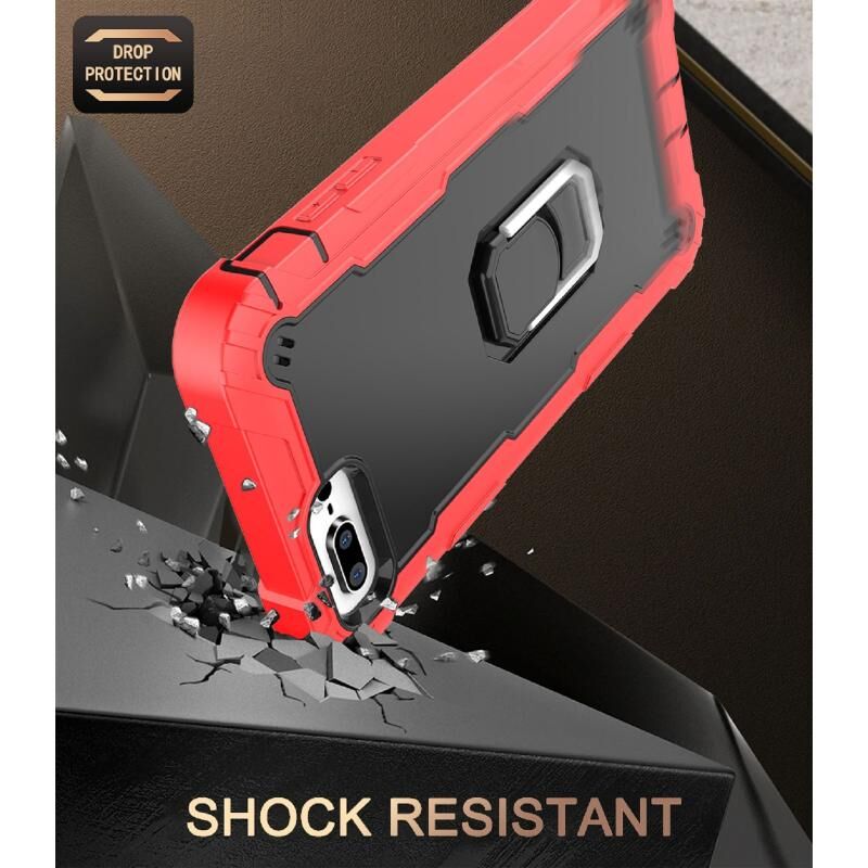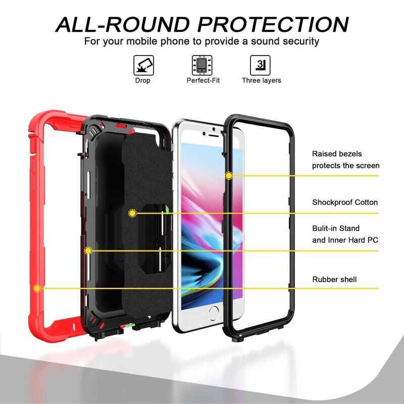 PC + Rubber 3-layers Shockproof Protective Case with Rotating Holder For iPhone 8 Plus / 7 Plus(Red + Black)