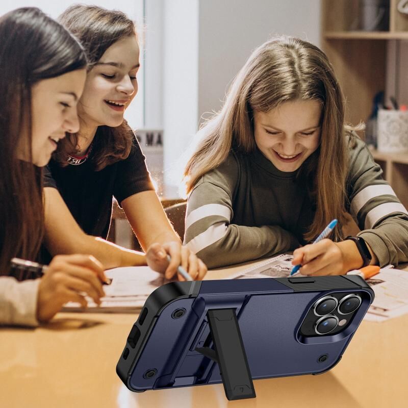 Θήκη κινητού τηλεφώνου PC + TPU ανθεκτική στις κρούσεις με βάση στήριξης για iPhone 14 Max (Λευκό+Μαύρο)