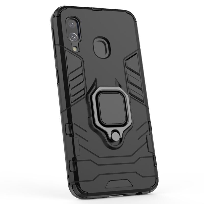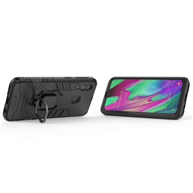 PC + TPU Αδιάβροχη προστατευτική θήκη για Galaxy A40, με μαγνητική θήκη δακτυλίου (Μαύρο)