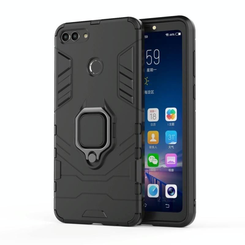 PC + TPU Αδιάβροχη προστατευτική θήκη για Huawei Y9 2018, με μαγνητικό δακτύλιο στήριξης (μαύρο)