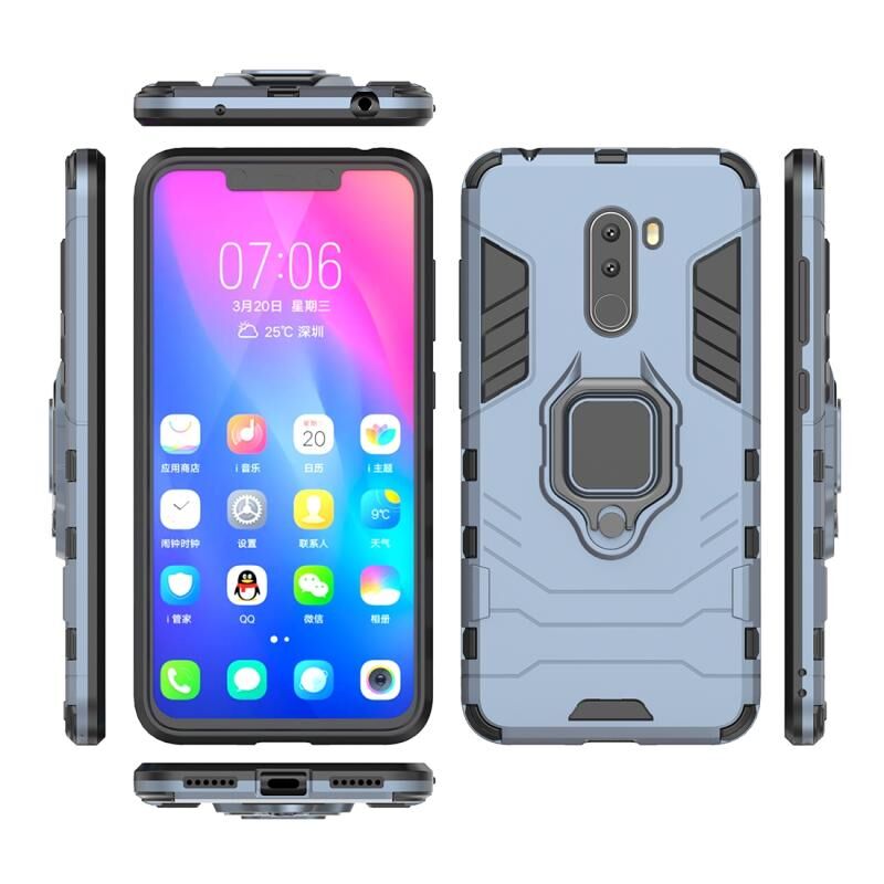 PC + TPU Αδιάβροχη προστατευτική θήκη με μαγνητικό δαχτυλίδι για το Xiaomi Pocophone F1 (Ναυτικό μπλε)