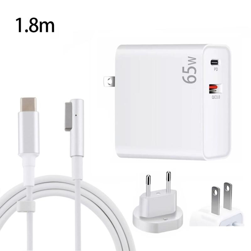 Προσαρμογέας Φόρτισης Φορητού Υπολογιστή PD-65W USB-C / Type-C + QC3.0 USB + Καλώδιο Δεδομένων USB-C / Type-C σε MagSafe 1 / L 1,8μ, Ευρωπαϊκό Βύσμα / Αμερικανικό Βύσμα (Μαύρο)