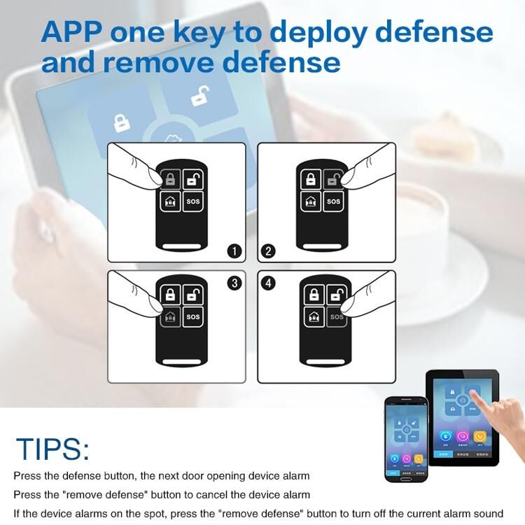 6. One-key-control function: Remote control to Arm/emergency alarm/disarm