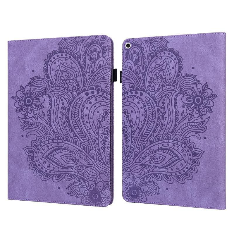 Peacock Embossed Pattern TPU + PU Horizontal Flip Leather Case with Holder & Card Slots & Wallet & Sleep / Wake-up Function For iPad 9.7 (2017) & (2018)(Purple)