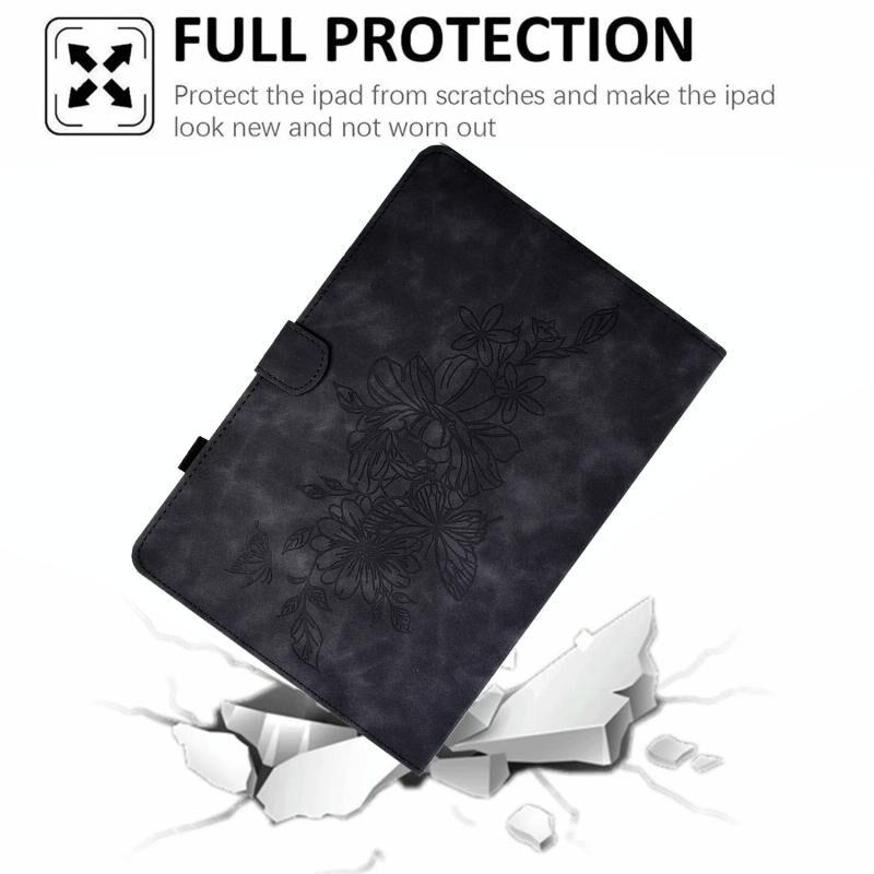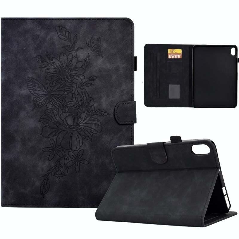 Peony Butterfly Embossed Leather Smart Tablet Case For iPad 2025 / 2022(Black)