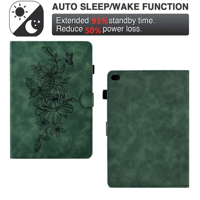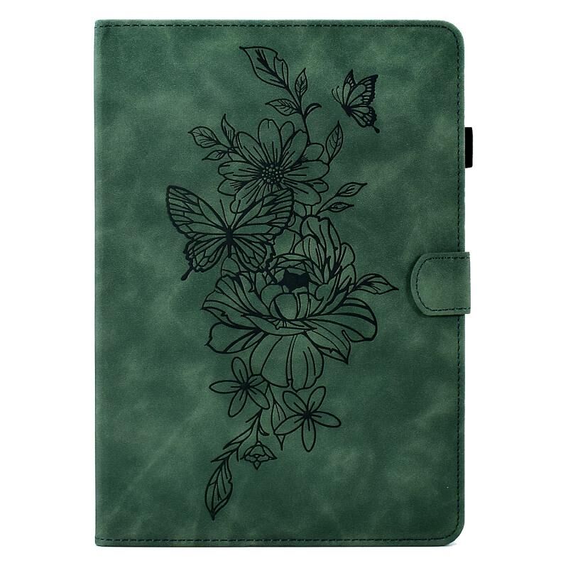 Θήκη Smart Tablet από Δέρμα με ανάγλυφο σχέδιο Πεταλούδας και Παιώνιας για iPad Air / Air 2 / 9.7 2017 / 9.7 2018 (Πράσινο)