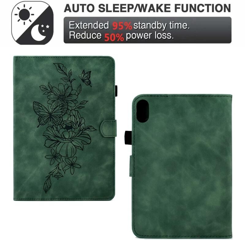 Peony Butterfly Embossed Leather Smart Tablet Case For iPad mini 2024 / mini 6(Green)
