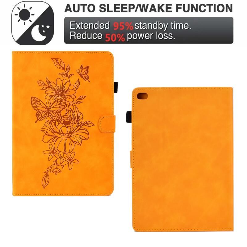 Peony Butterfly Embossed Leather Smart Tablet Case For iPad mini 5 / 4 / 3 / 2 / 1(Khaki)