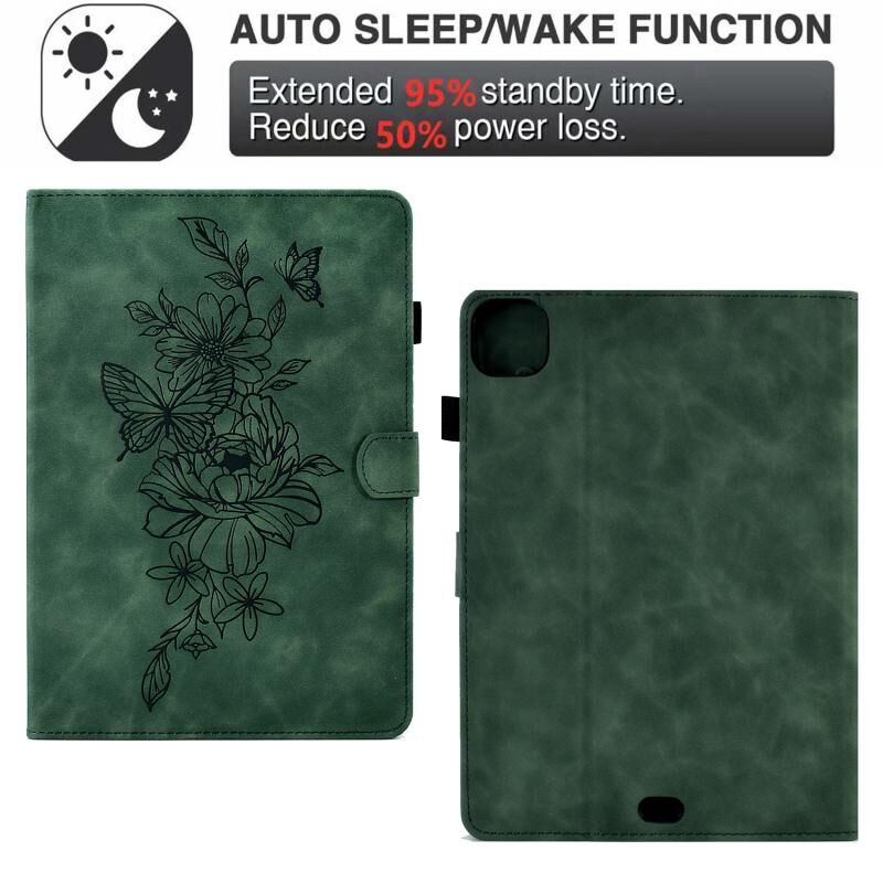 Peony Butterfly Embossed Leather Smart Tablet Case For iPad Pro 11 2020/2018 / Air 10.9 2020(Green)
