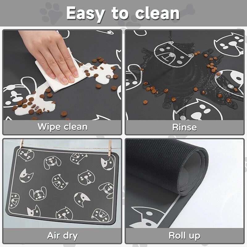 Χαλί Δαπέδου για Κατοικίδια Ανθεκτικό στα Δαγκώματα και Απορροφητικό, Στρώμα Σίτισης, Αντιολισθητικό, Πατάκι για Κρεβάτι Σκύλων, Στυλ: Γάτες και Σκύλοι Σκούρο Γκρι (45x60cm)
