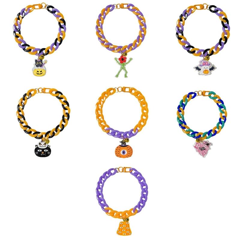 Pet Halloween Necklace Cartoon Tag Necklace Cats Dogs Holiday Adjustable Decoration Chain, Style: Bat(M-30cm)