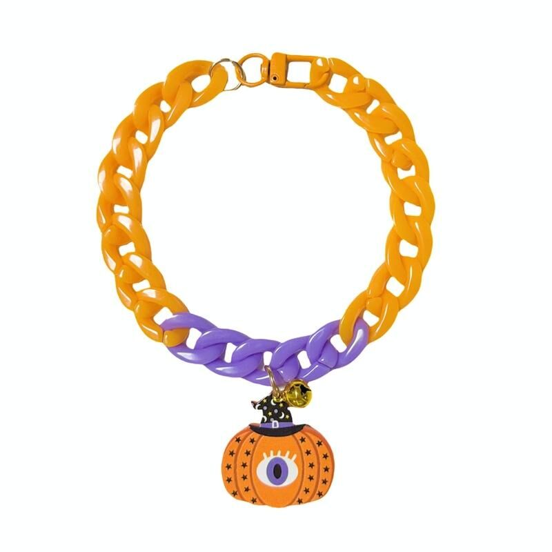 Κολάρο Χαλογουίν για Κατοικίδια, Κολάρο με Ετικέτα Καρτούν για Γάτες και Σκύλους, Διακοσμητική Αλυσίδα για τις Γιορτές, Ρυθμιζόμενο, Στυλ: Κολοκύθα 1 (XL-50cm)