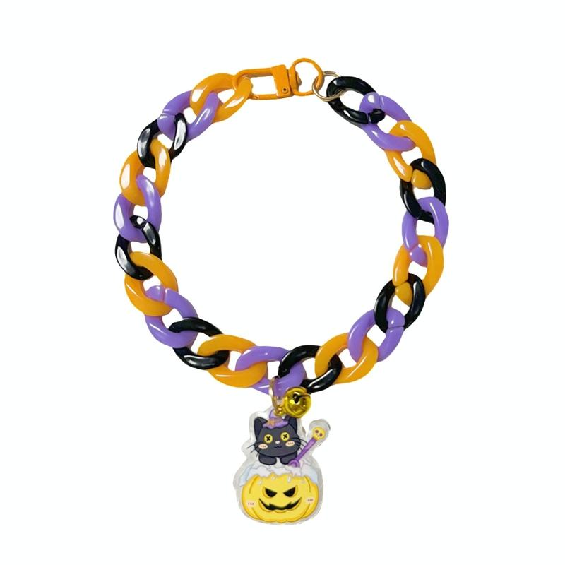 Κολάρο Χαλογουίν για Κατοικίδια, Κολάρο με Ετικέτα Καρτούν, Γάτες, Σκύλοι, Διακοπές, Ρυθμιζόμενη Αλυσίδα Διακόσμησης, Στυλ: Μικρή Μαύρη Γάτα (Μαύρο)